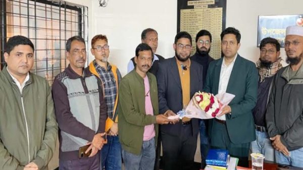 দুপচাঁচিয়া উপজেলার নবাগত উপজেলা নির্বাহী অফিসার(ইউএনও) শাহরুখ খানের সঙ্গে উপজেলা প্রেসক্লাবের পক্ষ থেকে সৌজন্য সাক্ষাত করে তাঁকে ফুলেল শুভেচ্ছা জানানো হয়েছে। গত ২৮জানুয়ারি মঙ্গলবার বিকালে তাঁর কার্যালয়ে উপস্থিত হয়ে ক্লাবের সভাপতি আবু কালাম আজাদ এ শুভেচ্ছা জানান। এসময় উপস্থিত ছিলেন ক্লাবের সহসভাপতি এম,ডি শিমুল, সাধারণ সম্পাদক গোলাম মুক্তাদির সবুজ, কোষাধ্যক্ষ খাইরুল ইসলাম দেওয়ান, সাংগঠনিক সম্পাদক উজ্জ্বল চক্রবর্তী শিশির, প্রচার ও প্রকাশনা সম্পাদক আরিফুল ইসলাম, সদস্য আবু আব্দুল্লাহ প্রিন্স, অরবিন্দ কুমার দাস, আবু রায়হান চৌধুরী প্রমুখ।