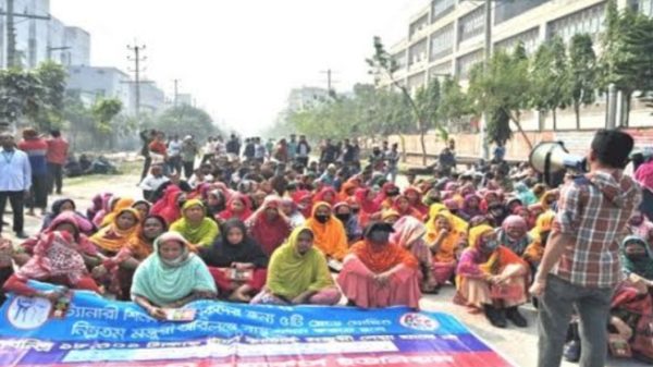 রাজধানীর সাভারে পাঁচ গ্রেডে সরকার ঘোষিত ন্যূনতম মজুরি বাস্তবায়নের দাবিতে কর্মবিরতি পালন ও বিক্ষোভ করছেন চামড়াশিল্পের বিভিন্ন ট্যানারিতে কর্মরত শ্রমিকেরা। মঙ্গলবার (২৮ জানুয়ারি) সকাল থেকে বিসিক চামড়াশিল্প নগরীর প্রধান সড়কে অবস্থান নিয়ে ট্যানারি ওয়ার্কার্স ইউনিয়নের ব্যানারে এ কর্মসূচি পালন করেন শতাধিক ট্যানারি শ্রমিক। পরে দুপুর ১২টা পর্যন্ত আন্দোলন চালিয়ে যান শ্রমিকেরা। দাবি আদায় না হলে আগামীতে আরও কঠোর কর্মসূচি পালনের ঘোষণাও দেওয়া হয় বিক্ষোভ থেকে। আন্দোলনরত শ্রমিকেরা জানান, অন্যান্য সেক্টরে ন্যূনতম মজুরি ঘোষণার পরপরই তা বাস্তবায়ন হলেও ট্যানারি শ্রমিকদের জন্য ঘোষিত ন্যূনতম মজুরি এখনও বাস্তবায়ন করেনি মালিকেরা। বিভিন্ন বাহানায় মালিকপক্ষ শুধু কালক্ষেপণই করছেন। বাধ্য হয়ে আন্দোলনের মাধ্যমে দাবি আদায়ের সিদ্ধান্ত নিয়েছেন এ শিল্পের শ্রমিকেরা। ট্যানারি ওয়ার্কার্স ইউনিয়নের সদস্য ও শিল্পনগরীর এপেক্স ট্যানারিতে কর্মরত নিলুফা নামে এক নারী শ্রমিক বলেন, ‘সরকার আমাদের জন্য মোট পাঁচটি গ্রেডে মজুরি বোর্ডের মাধ্যমে ন্যূনতম মজুরি ঘোষণা করেছে, যেখানে সর্বনিম্ন মজুরি ১৮ হাজার এক টাকা এবং সব পক্ষের সম্মতিতেই এ মজুরি ঘোষণা করা হয়েছে। কিন্তু মালিকেরা এখন এসে বলে এ মজুরি তাদের জন্য বেশি হয়ে গিয়েছে। ’তিনি আরও বলেন, ‘দীর্ঘ ১৩ মাস আমরা অপেক্ষা করছি, এখন আমাদের দেয়ালে পিঠ ঠেকে গেছে। বাধ্য হয়ে আমরা রাস্তায় নেমে এসেছি, দাবি আদায় না হওয়া পর্যন্ত আমাদের এ আন্দোলন অব্যাহত থাকবে।’ ফারুক হোসেন নামে আরেক শ্রমিক বলেন, ‘গত ২১ নভেম্বর সরকার আমাদের ন্যূনতম মজুরি ঘোষণা করে গেজেট প্রকাশ করেছে। কিন্তু এখনও সেই মজুরি বাস্তবায়ন করা হয়নি। আমাদের পেটে ক্ষুধা, দেয়ালে পিঠ ঠেকে গেছে। বর্তমান দ্রব্যমূল্যের ঊর্ধ্বগতির এ বাজারে এভাবে আগের বেতনে আর সংসার চলে না। কাজেই আমাদের ন্যূনতম মজুরি বাস্তবায়নের দাবিতে আমাদের এ আন্দোলন শুরু হয়েছে এবং দাবি আদায় না হওয়া পর্যন্ত এটি চলবে।’ ট্যানারি ওয়ার্কার্স ইউনিয়নের সাধারণ সম্পাদক আব্দুল মালেক বলেন, ‘গত নভেম্বরে ট্যানারি শ্রমিকদের ন্যূনতম মজুরি ঘোষণা করার পর থেকে বিভিন্ন সময় মালিকপক্ষের সঙ্গে বহুবার আমরা আলোচনা করেছি। কিন্তু কোনোভাবেই মালিকপক্ষ এ ন্যূনতম মজুরি বাস্তবায়ন করেনি। ফলে শ্রমিকেরা এখন কর্মবিরতিসহ বিভিন্ন কর্মসূচি দিচ্ছে, আন্দোলন করছে- যা চলমান। আজকের কর্মসূচি এরই অংশ।’ বাংলাদেশ ট্যানার্স অ্যাসোসিয়েশনের (বিটিএ) সাধারণ সম্পাদক মো. সাখাওয়াত উল্লাহ বলেন, ‘বিষয়টি নিয়ে সকল পক্ষের সঙ্গে আলোচনা অব্যাহত রয়েছে। আশা করছি দ্রুতই আমরা আলোচনার মাধ্যমে এ সংকটের একটি সুন্দর 