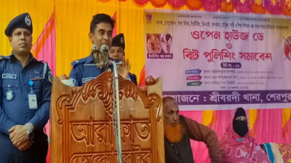 শেরপুরের শ্রীবরদীতে ওপেন হাউজ ডে ও বিট পুলিশিং সমাবেশ অনুষ্ঠিত হয়েছে।মঙ্গলবার (১৩) ফেব্রুয়ারি বিকালে শ্রীবরদী সদর ইউনিয়নের দহের পাড় সরকারি স্কুল মাঠে, শ্রীবরদী থানা পুলিশের আয়োজনে এ সমাবেশ অনুষ্ঠিত হয়।