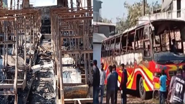 যশোর শহরের বাহাদুরপুরের নিমতলা এলাকায় পার্কিং করা একটি বাসে অগ্নিসংযোগের ঘটনা ঘটেছে। শুক্রবার দিবাগত রাত আনুমানিক একটার দিকে কে বা কারা এ ঘটনা ঘটিয়েছে বলে জানা গেছে। এতে ঢাকা মেট্রো-ব-১৪২০৯৮