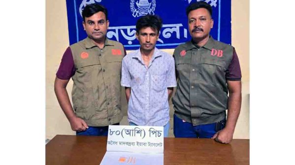 মাদক ব্যবসায়ের সাথে জড়িত মোঃ জসিম মোল্ল্যা(৩৮) নামের এক মাদক কারবারিকে গ্রেফতার করেছে নড়াইল জেলা গোয়েন্দা পুলিশ। গ্রেফতারকৃত মোঃ জসিম মোল্ল্যা(৩৮) নড়াইল সদর থানাধীন দুর্গাপুর দক্ষিণ পাড়া গ্রামের মৃত ছত্তার