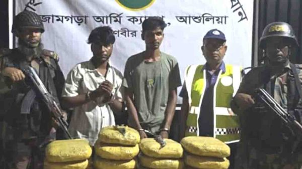 মুন্সীগঞ্জের গজারিয়া উপজেলার টেঙ্গারচর এলাকায় গজারিয়া সেনা ক্যাম্পের সেনাবাহিনীর একটি টহল দল বিশেষ অভিযানের মাধ্যমে বিপুল পরিমাণ মাদকদ্রব্য উদ্ধার করেছে। এ সময় আটক করা হয় মাদক ব্যবসায়ী মোঃ আলামিন হাওলাদার