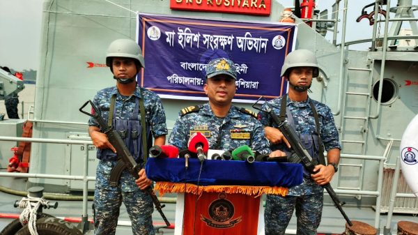 পিরোজপুরের কাউখালীতে মা ইলিশ রক্ষায় বাংলাদেশ নৌবাহিনী কর্তৃক অভিযান পরিচালনা করা হয়েছে। শনিবার (১৮ অক্টোবর) দুপুরে উপজেলার সন্ধ্যা নদীতে বানৌজা কুশিয়ারা নামে একটি যুদ্ধ জাহাজ নিয়ে এ অভিযান পরিচালনা করা