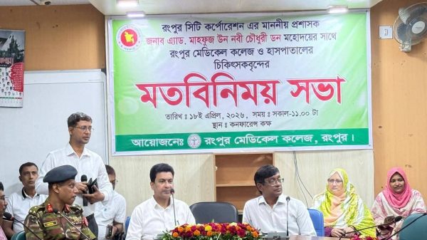 রংপুর মেডিকেল কলেজ হাসপাতালের অভ্যন্তরীণ পরিবেশ পরিচ্ছন্ন, সুন্দর ও রোগীবান্ধব করার লক্ষ্যে এক গুরুত্বপূর্ণ মতবিনিময় সভা অনুষ্ঠিত হয়েছে। সভায় রংপুর সিটি কর্পোরেশনের (রসিক) প্রশাসক এ্যাডভোকেট মাহফুজ উন নবী ডন হাসপাতালের